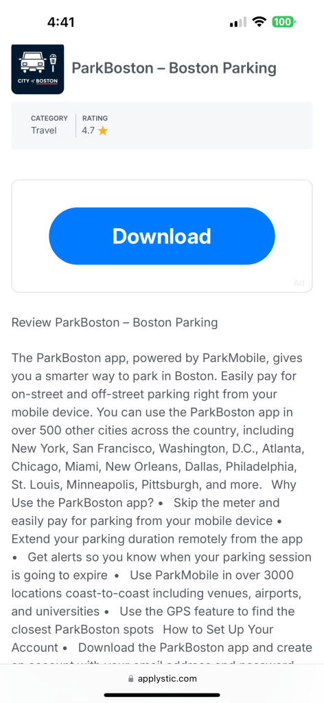 So I took the picture posted above, and then we quickly headed to an old friend’s newish restaurant (Nash Bar and Stage) in fear of debilitating testicular frostbite. Once the wagyu sliders met their final resting place, in my belly. I frantically remembered I had 40 minutes of parking, still to finance. My first mistake of many was Googling the Park-Boston app instead of heading directly to the app store for my imminent pay-now parking needs. That search brought me to the deceptive items pictured below (AKA my top Google result). Whether it was the delightful conversation or not, I wasn’t in my normal investigatory headspace. I chose to put way too much trust in the legitimacy of the online parking app community. Needless to say, I continued on the yellow brick road laid seamlessly out before me. Clicking my way through the steps also pictured below. Once I came upon the debit card portion of the transaction, I again willfully entered my sacrificial info as if protected in a dedicated financial safe space. To my surprise, my bank immediately detected some trouble. Immediately sending me an alert questioning fraudulent activity. When I saw the charges in question, after further inquiry. I remembered I had been spending money that day like a drunken sailor. Included in my spending spree was a purchase of a brand new iPhone that my bank’s app had yet to recognize as its new home. But all the charges to that point were, in fact, mine, so I brushed it off as a hilarious misunderstanding between consenting adults.