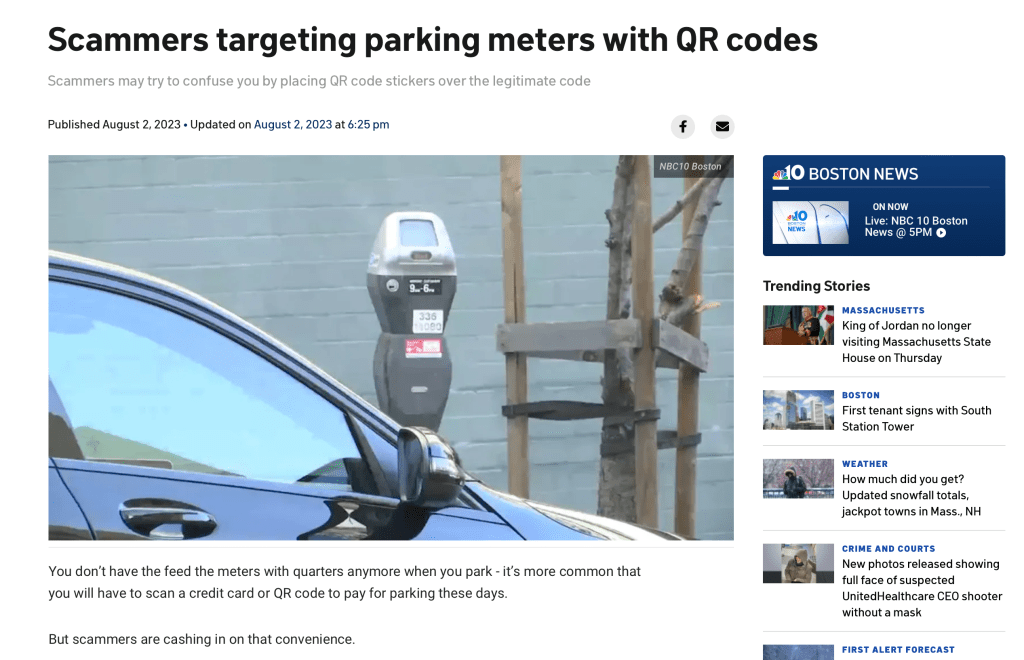 Thankfully, I kept the damage minimal, as the initial money grab was only for $1.95. My guess is, once they knew the coast was clear on their initial trial run through my checking account. We spoiled their master plan in its infancy. They would’ve stormed into the bank, guns blazing, to grab all the remaining cash. But what they didn’t take in cash, they did make off with, in plenty of my time and patience, for this kind of skull-fuckery. All the corresponding headaches of changing your online accounts and recurring bill payments from the now tainted card numbers you once took for granted. In the end my sister saved the day and paid the fee on her properly functioning Park Boston App. As I, once again completely shit the bed at performing REMEDIAL adult tasks. Moving on to the live and learn portion of the program, I found out that there are multiple scams related to Park Boston and most likely similar “convenience” based parking apps throughout different cities. Never mind the city of Boston itself was also involved in its own related scandal. They were, at one time, just indiscriminately dipping into bank accounts like it was an unlimited slush fund. However, the more widespread scams happen when nefarious characters replace the QR codes associated with the meters with fraudulent ones directing you to pay them instead of the proper authorities. So Buyer’s beware, make sure to download your city’s Parking App from the correct App-procurement platform. Please do as I say and not what I do, you can thank me later. Until then, I will continue to expose all the absurdity in this world, including my own.