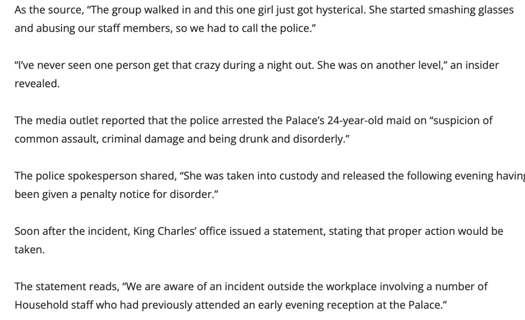 FOR THE ENTIRE CNN ARTICLE CLICK THE LINK BELOW https://www.cnn.com/2024/12/13/uk/buckingham-palace-housemaid-arrested-gbr-scli-intl/index.html