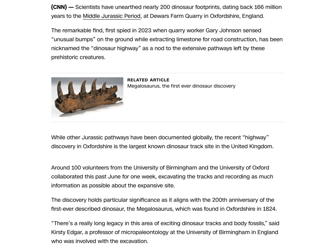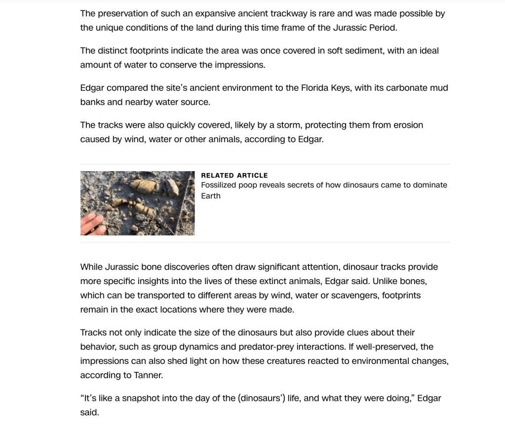 FOR THE ENTIRE CNN ARTICLE QUOTED CLICK THE LINK https://www.cnn.com/2025/01/08/science/jurassic-footprints-dinosaur-highway-uk/index.html