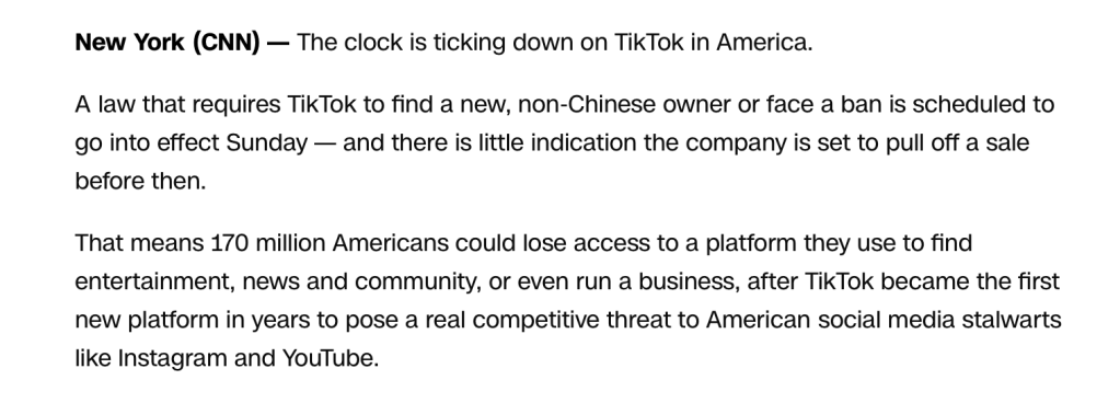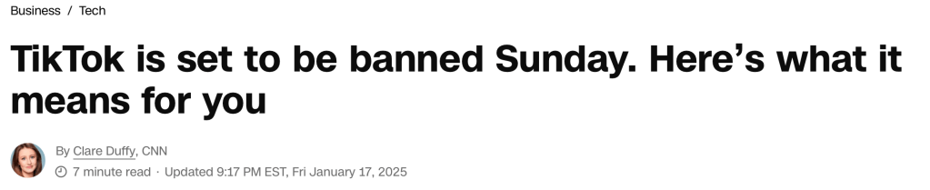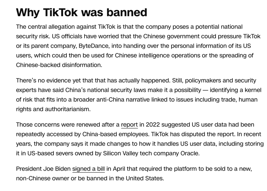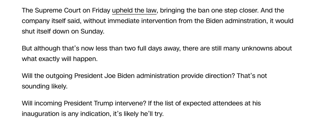 Click the link for the CNN article quoted https://www.cnn.com/2025/01/17/tech/tiktok-getting-banned-trump-biden/index.html