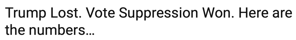 For The Entire Greg Palast Article Click The Link Below https://sdvoice.info/trump-lost-vote-suppression-won-here-are-the-numbers/