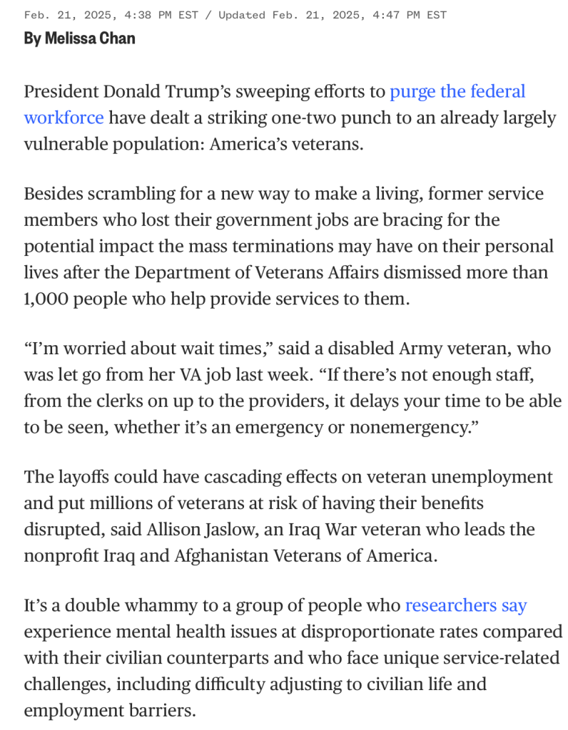 For More On The NBC News Article Quoted Click On The Link https://www.nbcnews.com/news/us-news/mass-federal-layoffs-deliver-gutting-one-two-punch-americas-veterans-rcna193127