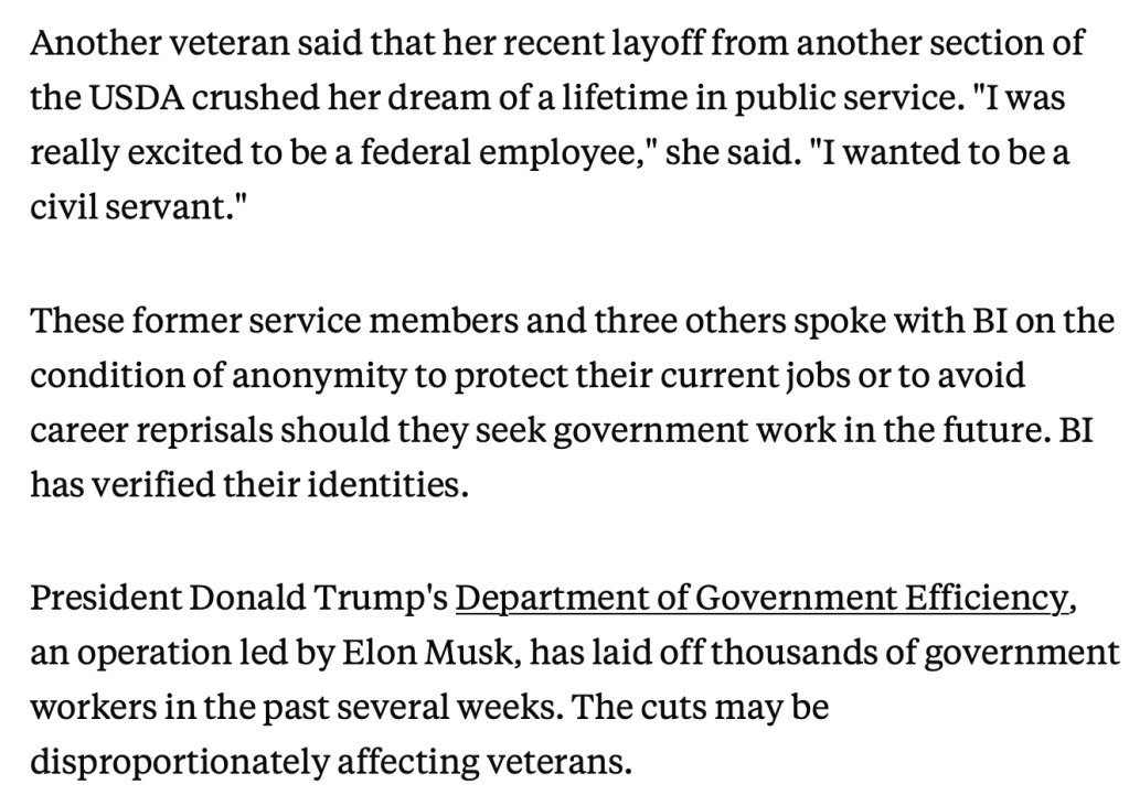 For More On The Business Insider Article Quoted Click On The Link https://www.businessinsider.com/trump-doge-cuts-hit-military-veterans-causing-fear-confusion-2025-2
