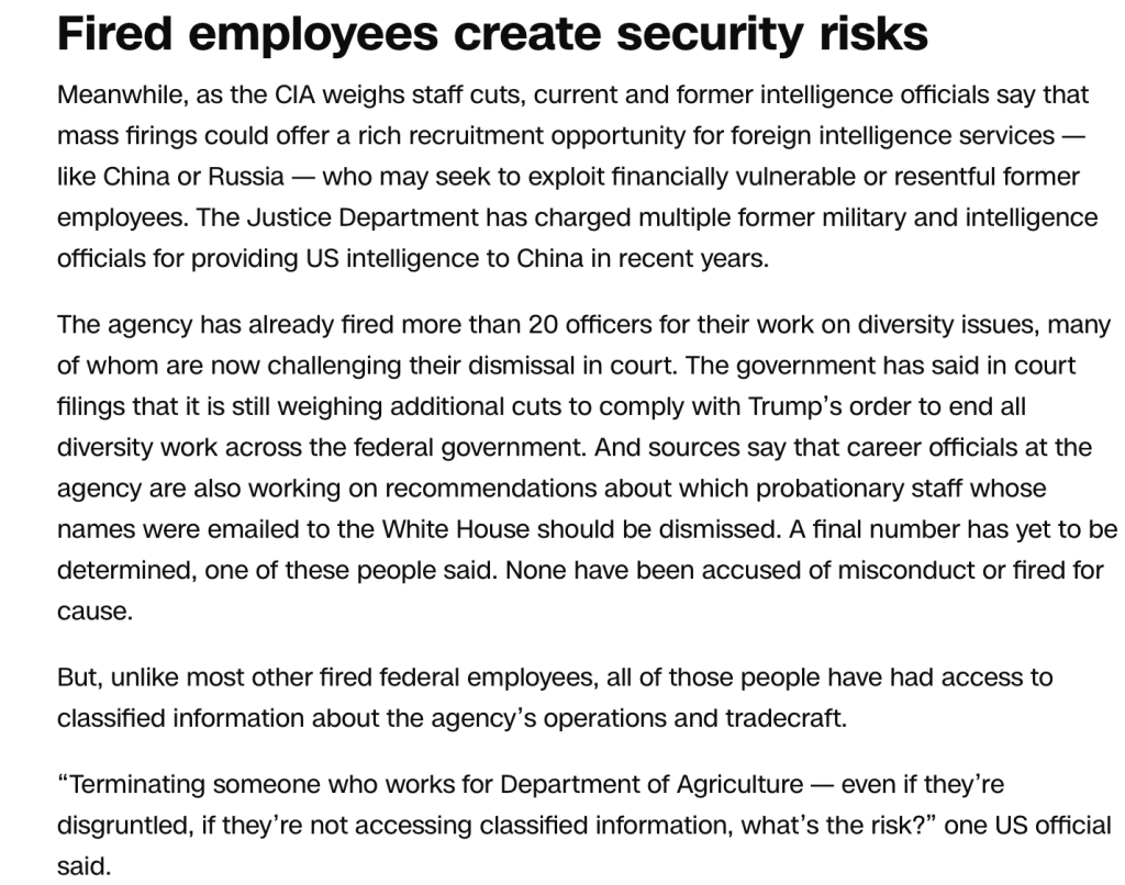 For More On The CNN Article Quoted Click The Link Below https://www.cnn.com/2025/02/24/politics/cia-security-risks-trump/index.html