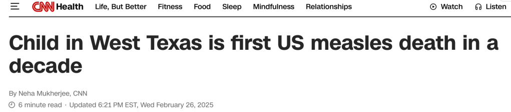 For More On The CNN Article Quoted Click On The Link https://www.cnn.com/2025/02/26/health/texas-measles-death/index.html