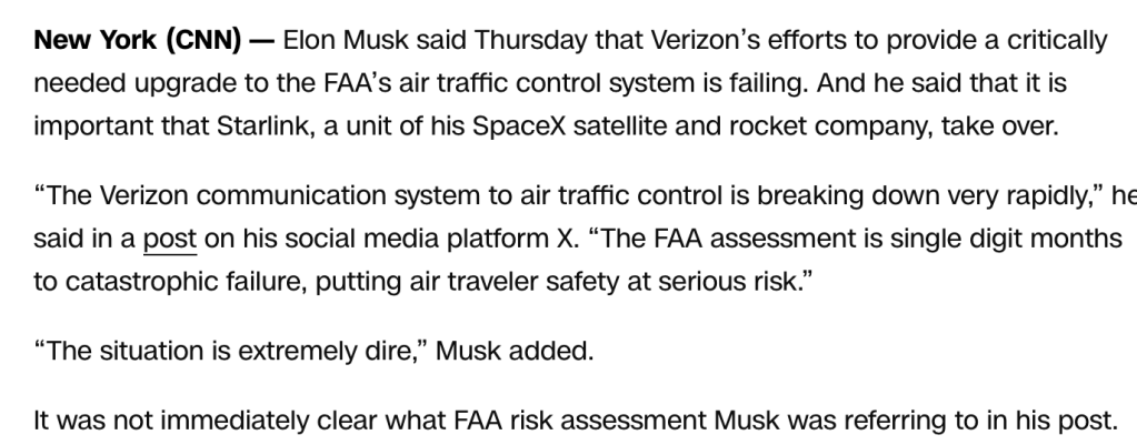 For More On The CNN Article Quoted Click On The Link https://www.cnn.com/2025/02/27/business/elon-musk-faa-air-traffic-control-failing-spacex/index.html