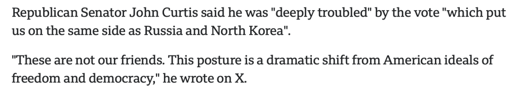 The Groupies Of Putin (GOP) have once again made a mockery of themselves, the White House, and American democracy. Donald Trump and JD Vance were so visually frustrated with Ukrainian President Zelenskyy rejecting their tag-team advances. To save face among the misogynistic MAGATS, I was half expecting Trump to start randomly grabbing p*ssies and Vance to surgically hump couches. It’s the epitome of Trump’s narcissism to brag about his diplomatic skills after the only agreement reached between the two countries was his ability to speak Russian propaganda fluently. The US publicly joining the Axis of Evil against Ukraine and our traditional allies during a UN vote the other day only solidifies that Republicans have sided with Putin over democracy in this battle.