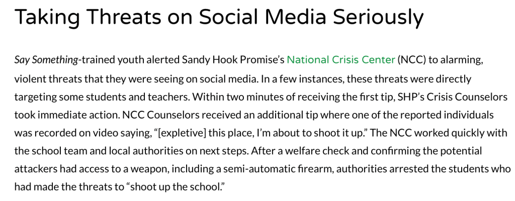 For More Information On Sandy Hook Promise Click On The Link Below https://www.sandyhookpromise.org/blog/news/how-a-school-community-prevented-shooting/