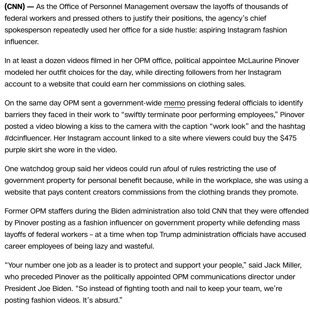For More On The CNN Article Quoted Click On The Link Below https://www.cnn.com/2025/03/11/politics/opm-spokesperson-fashion-influencer-videos-invs?cid=ios_app