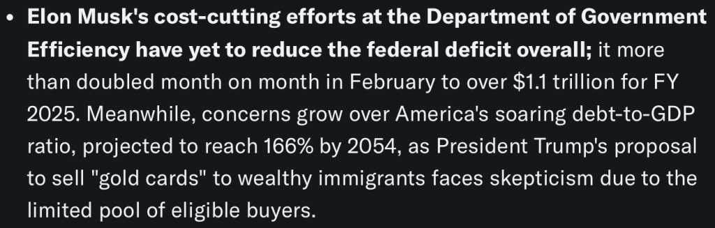 If you genuinely believed Trump’s DOGE-Bags were created to lower the deficit, then I have some good and bad news for you. The bad news is you’ve been consuming so much right-wing propaganda over the years that for the first time in your life, you have a sincere opinion about women’s sports. The good news is that I have an incredible investment opportunity for you. It’s a state-of-the-art cryptocurrency that you can get into on the ground floor. And with just $10k worth of Fuddruckers gift cards, you too can become an overnight millionaire. If that scam sounds familiar, I did receive the inspiration from Trump’s white privilege EZPass of immigration, AKA the “Trump Gold Card.” An irrational money-making scheme for the United States to court the few remaining non-American millionaires for citizenship. What better way to raise American tax revenues than to invite 10 million people into this country who are so filthy rich they’ll never pay taxes.