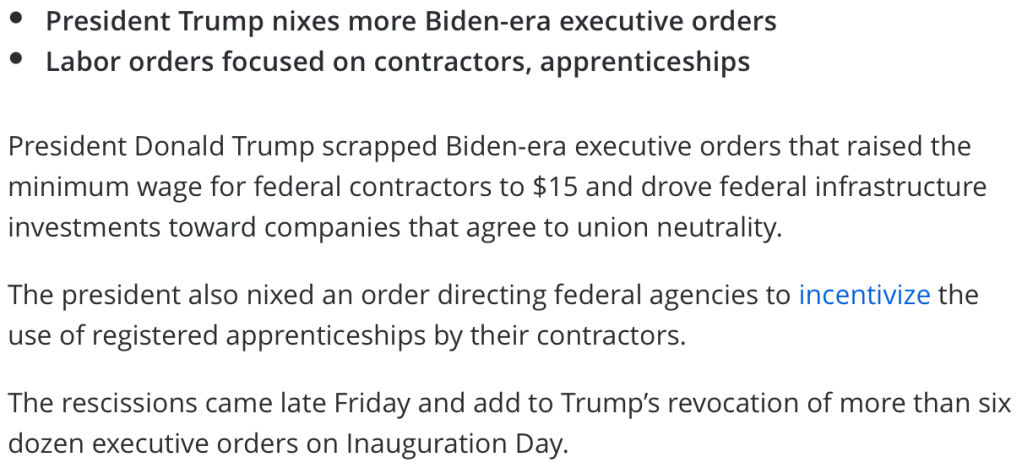 For More On The Bloomberg Law Article Quoted Click On The Link Below https://news.bloomberglaw.com/daily-labor-report/trump-axes-15-contractor-wage-infrastructure-project-orders