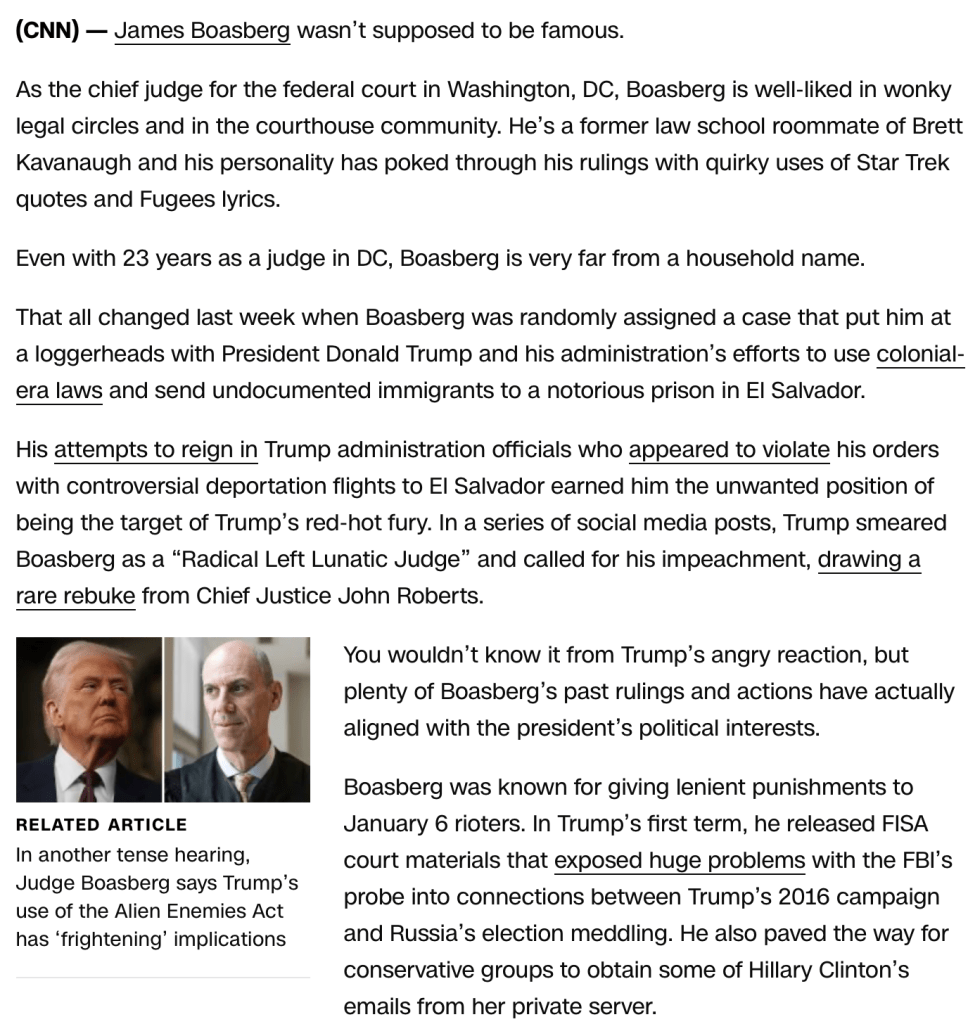 For More On The CNN Article Quoted Click On The Link https://www.cnn.com/2025/03/22/politics/who-is-judge-james-boasberg/index.html