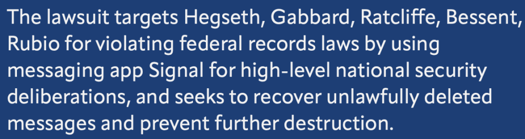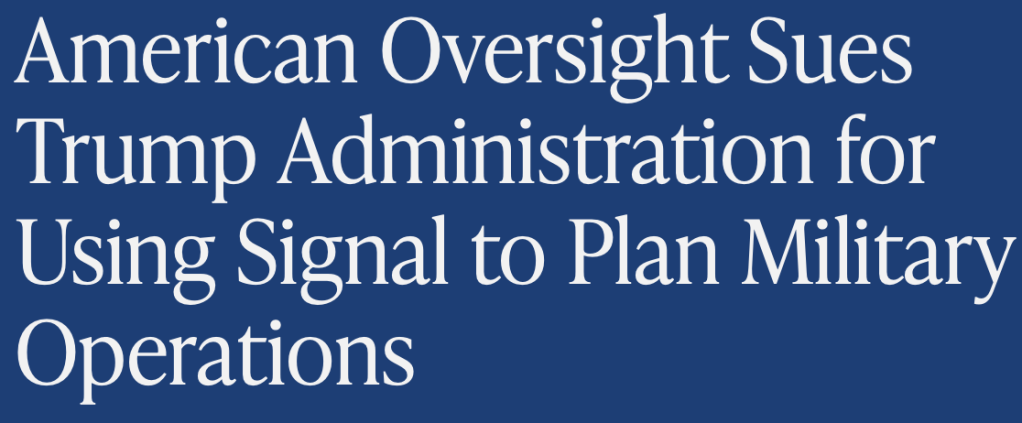For More On The American Oversight Article Quoted Click On The Link https://americanoversight.org/american-oversight-sues-trump-administration-for-using-signal-to-plan-military-operations/