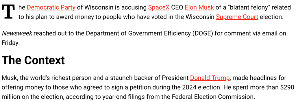 For More On The Newsweek Article Quoted https://www.newsweek.com/elon-musk-wisconsin-supreme-court-2052250