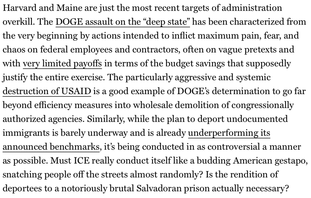The Entire New York Magazine Article Quoted https://nymag.com/intelligencer/article/harvard-and-maine-battles-show-trumps-addiction-to-overkill.html