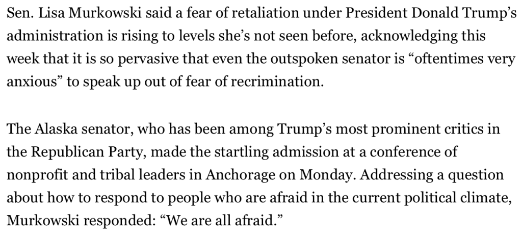 The Entire Politico Article Quoted https://www.politico.com/news/2025/04/17/lisa-murkowski-trump-retaliation-00295852
