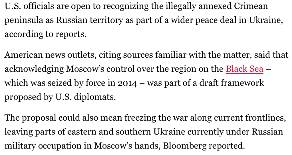As a Democrat, I can honestly admit that Donald Trump is being unfairly mischaracterized online. For instance, on Barnes and Noble’s website, I found a copy of “The Art Of The Deal” in the non-fiction section. In reality, Trump is such an overrated deal-maker if given a time machine, he would veto the Louisiana Purchase or double down on Brexit. It’s no wonder that POS fairytale of his, made The Anti-Social-Media “Gun-to-Head-Book-Ban” wish list. Not since “Hillbilly Elegy” censored JD Vance’s habitual couch fornication has a MAGA biography covered up the truth this much. So, it should come as no surprise the Trump Regime is willing to recognize Russia as the proud new owner of Crimea without getting any concessions in return from Putin.