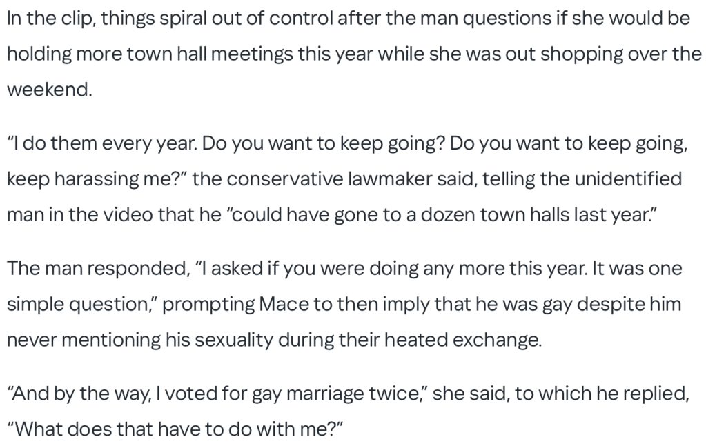 The Huffington Post Article Quoted https://www.yahoo.com/news/nancy-mace-films-herself-having-004041380.html