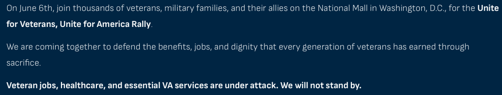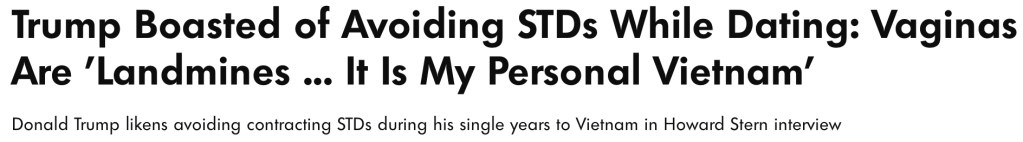 Now, since enlisted soldiers are forced to RSVP for Trump’s egotistical birthday gathering or face court martial for going AWOL, Veterans have decided to throw their own DC bash to protest the current dictatorship. And rightfully so, considering former military members have been overwhelmingly targeted by the cruelty and chaos of the DOGE-bag MAGA cuts. Not only does Trump believe those who fought and died for American freedom are “Suckers and losers,” he’s said avoiding STDs during the 80s and 90s was his “personal Vietnam, maybe worse.” After a fake doctor’s note about bone spurs saved his pampered fat ass from the draft and actually serving alongside brave young men like my Dad.