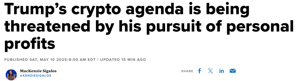 The CNBC Article Quoted – https://www.cnbc.com/2025/05/10/trumps-crypto-agenda-threatened-by-his-pursuits-of-personal-profits.html