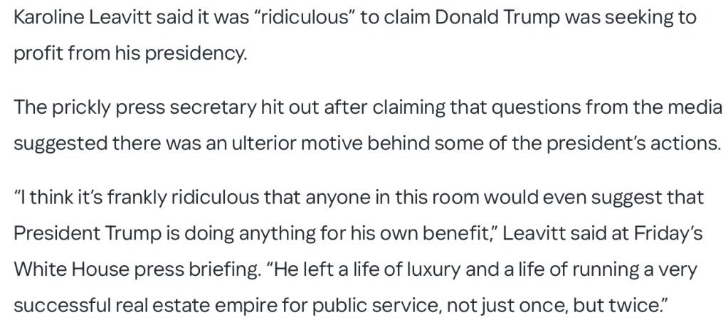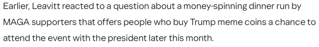 The Daily Beast Article Quoted – https://www.thedailybeast.com/leavitt-launches-angry-defense-of-trumps-money-making-schemes/