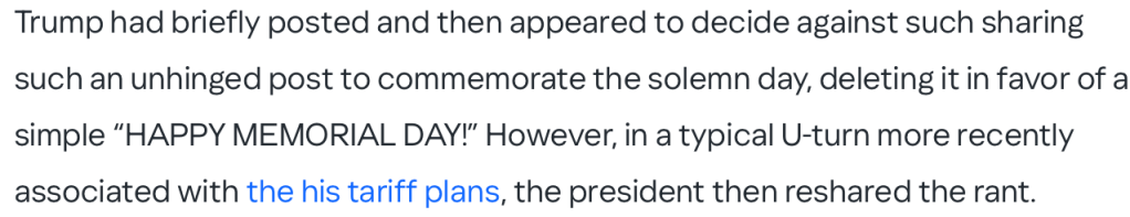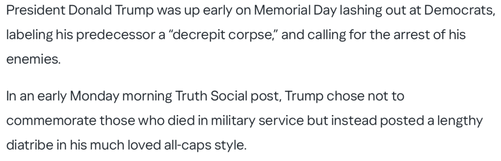 The Daily Beast Article Quoted – https://www.yahoo.com/news/trump-kicks-off-memorial-day-120715494.html
