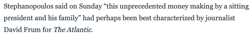The Daily Beast Article Quoted – https://www.thedailybeast.com/abcs-george-stephanopoulos-slams-donald-trump-and-familys-brazen-corruption/