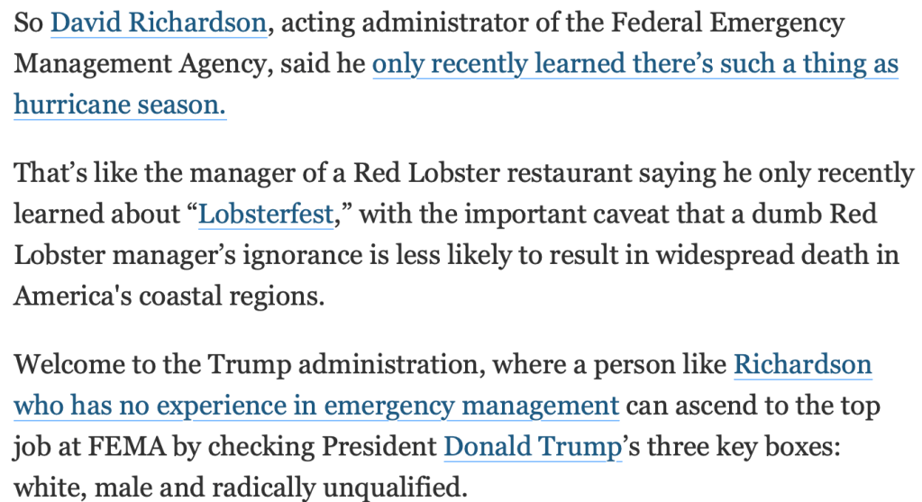 Have You Heard FEMA’s Hurricane Hilarious, David Richardson’s Latest Joke?!?