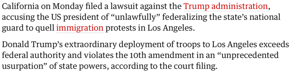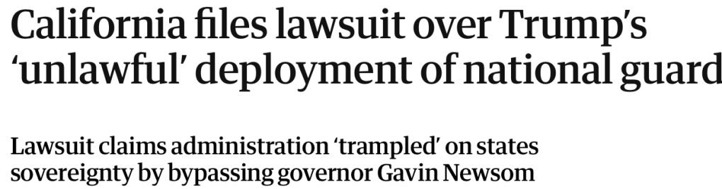 The Guardian Article Quoted – https://www.theguardian.com/us-news/2025/jun/09/california-lawsuit-national-guard-trump