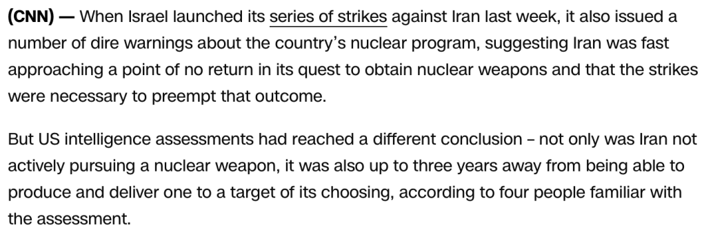 The CNN Article Quoted – https://www.cnn.com/2025/06/17/politics/israel-iran-nuclear-bomb-us-intelligence-years-away