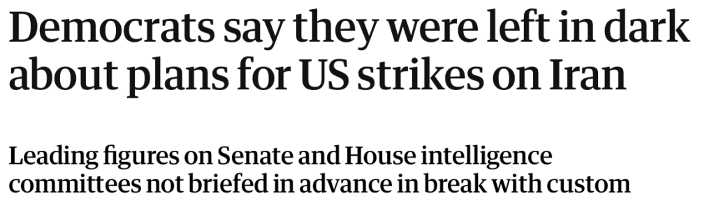 The Guardian Article Quoted – https://www.theguardian.com/us-news/2025/jun/22/democrats-iran-airstrikes