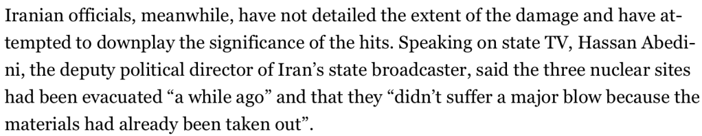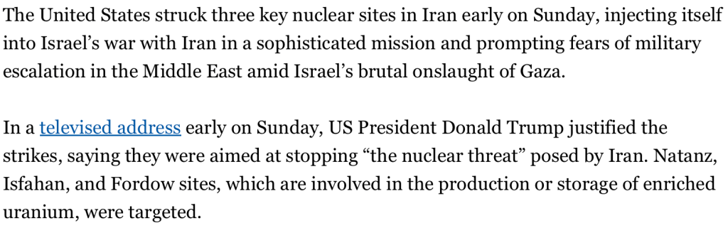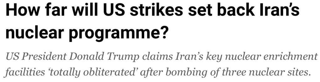 The Aljazeera Article Quoted – https://www.aljazeera.com/news/2025/6/22/how-far-will-us-strikes-set-back-irans-nuclear-programme