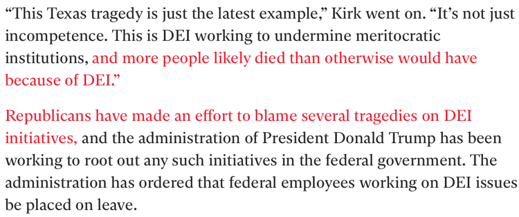 The Independent Article Quoted – https://www.the-independent.com/news/world/americas/us-politics/charlie-kirk-texas-floods-dei-death-toll-b2785957.html