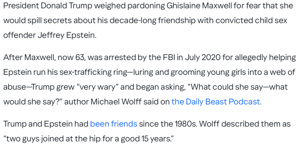 The Daily Beast Article Quoted – https://www.yahoo.com/news/trump-held-talks-pardon-ghislaine-170959909.html