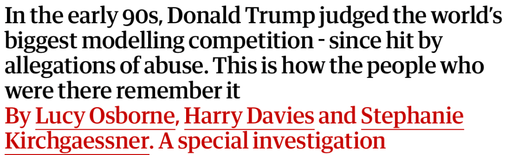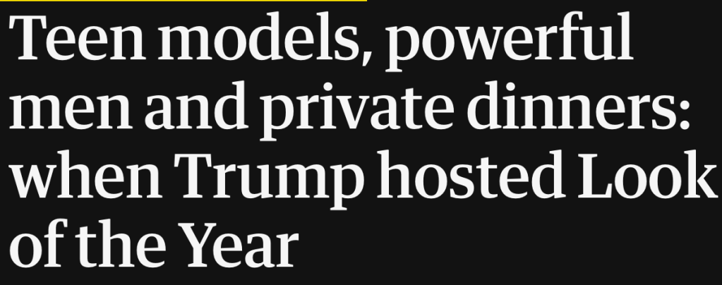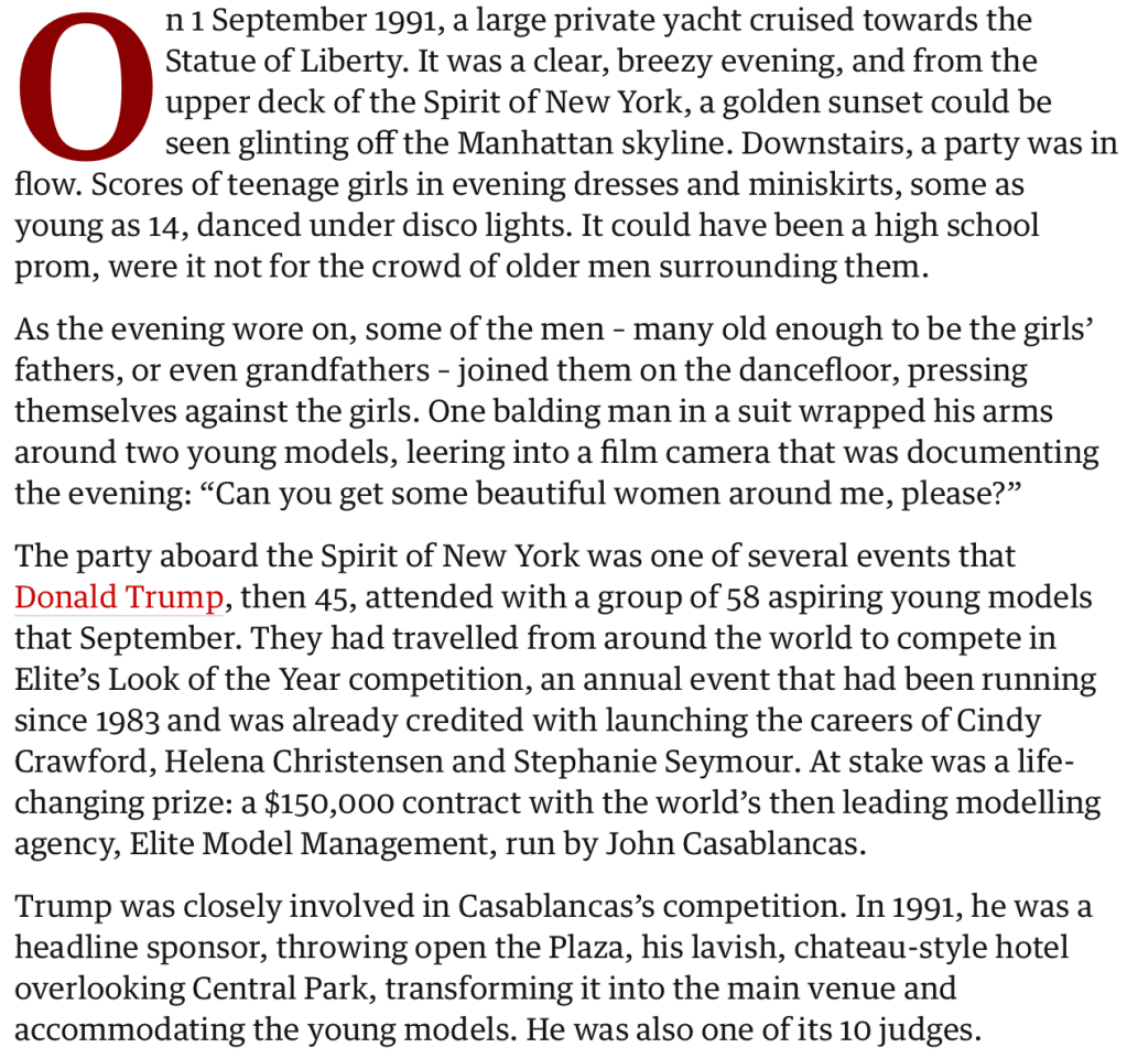 The Guardian Article Quoted – https://www.theguardian.com/us-news/2020/mar/14/teen-models-powerful-men-when-donald-trump-hosted-look-of-the-year