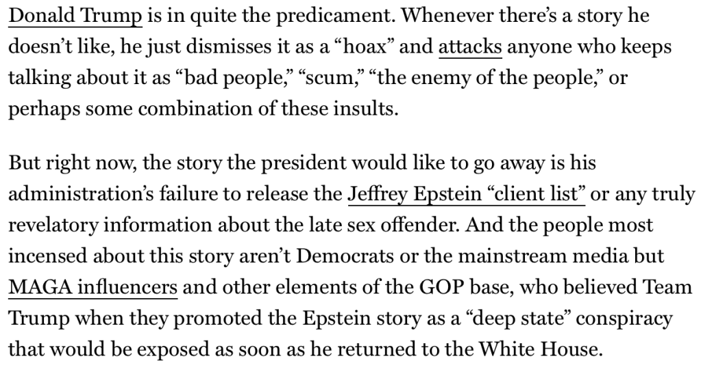 The New York Magazine Article Quoted – https://nymag.com/intelligencer/article/trump-maga-only-bad-people-buy-epstein-files-hoax.html