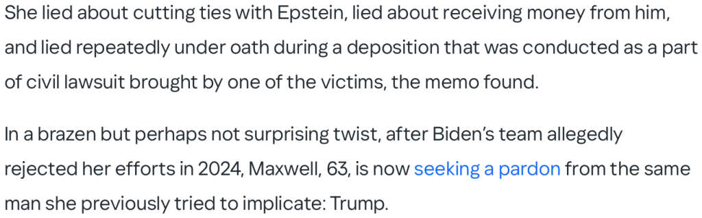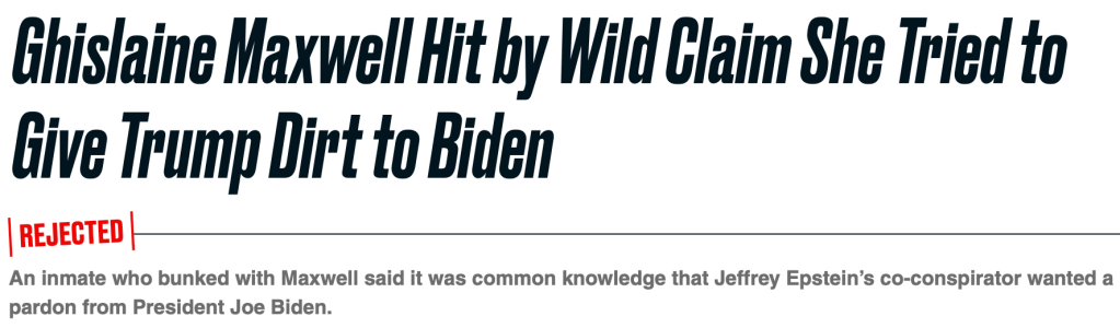 The Daily Beast Article Quoted – https://www.thedailybeast.com/ghislaine-maxwell-hit-by-wild-claim-she-tried-to-give-dirt-on-donald-trump-to-joe-biden/