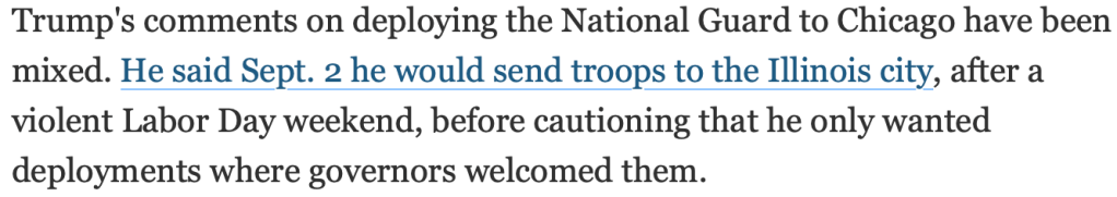 The USA Today Article Quoted –https://www.usatoday.com/story/news/politics/2025/09/06/trump-national-guard-chicago-dc-protests/86017634007/