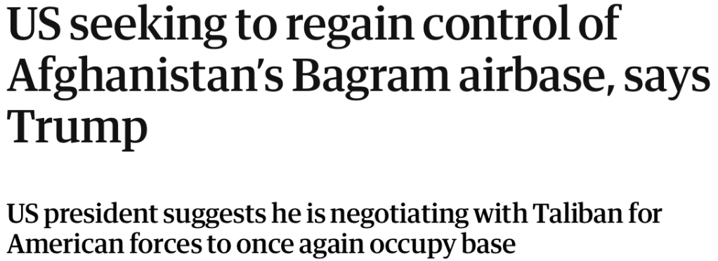 The Guardian Article Quoted – https://www.theguardian.com/us-news/2025/sep/18/us-seeking-to-regain-control-of-afghanistans-bagram-airbase-says-trump