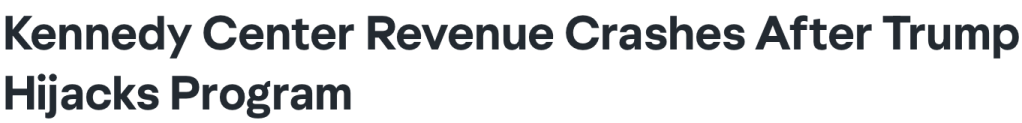 In today’s Palate Cleanser, John Stewart reminds us that in the war against fascism, comedy is always on the front lines taking shrapnel. Looking back, it’s ironic that such a profound antifascist statement could be spoken at the Kennedy Center, which, after Ivanka’s virginity, is now Trump’s most prized conquest. And if, for some reason, you need more proof that hijacking the arts and entertainment industries wasn’t high atop Project 2025’s To-Do list, look no further than the headlines below. The once prestigious Mark Twain Award is the highest honor a comedian can receive, and the list of prior award winners reads like a who’s-who of my comedic influences. That was until Trump’s Cancel Culture decided to outright cancel culture. For example, I’m hearing next year’s recipient of the Mark Twain Award is a toss-up between Rossane Barr, the “You might be a redneck…” guy, and a Russian bot on X that Trump loves, who posts racist cat memes.