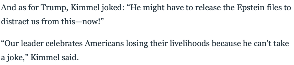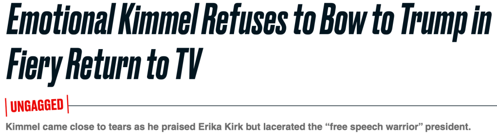 The Daily Beast Article Quoted – https://www.thedailybeast.com/emotional-kimmel-returns-with-no-apology-and-refuses-to-bow-to-maga/