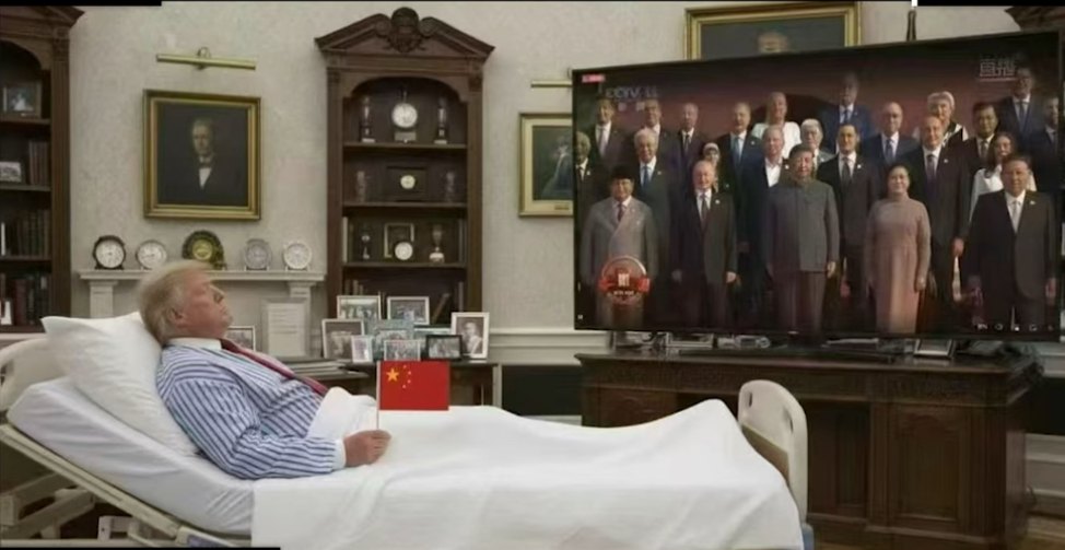 Donald Trump took time out of bitching about a civil disobedient escalator at the UN being nothing more than an UPPITY STAIRCASE, ON THE LEFT. To protect the vital interests of American national security. No, not from Russian fighter jets taunting Sarah Palin as she watches the War in Ukraine from her Alaskan front porch. But from a network of Venezuelan speed boats making waves in the US. Not for trafficking Fentanyl, smuggling terrorists, or even pissing off Miami windsurfers with an overly aggressive wake. But by getting blown to bits by a US Military drone and unknowingly starring in the Department of War’s latest murder porn. (AKA the reason Pete Hegseth can snap his own bedsheet in half.) And yet, somehow, Eric Trump, Donald’s only genuine regret in life, is claiming Daddy deserves a Nobel Peace Prize for this behavior. Never mind, Trump just declared war on his own citizens, and his USAID cuts have killed more than 300,000 children. In what’s considered the worst ever comeback to “What would Jesus do?” But fear not, America, there’s no need to worry about those pesky Russians flexing their military “gym muscles” on NATO’s doorstep, with President MAGA Teresa in the Oval Office. Yes, perhaps Donald still doesn’t understand the meaning of a woman screaming “no,” but in relation to war, he swears he can stop on a dime. Sure, nobody knows the true number of international conflicts he’s resolved, but that’s merely because Trump only has 10 fingers, and Melania can’t count for shit. And not at all because Trump believes the quote, “If you keep on believing, the dream that you wish will come true,” was from “The Art of War,” not some gold digger wannabe named “Cinderella.”