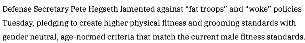 The Military Times Article Quoted – https://www.militarytimes.com/news/pentagon-congress/2025/09/30/hegseth-blasts-fat-troops-in-rare-gathering-with-military-brass/