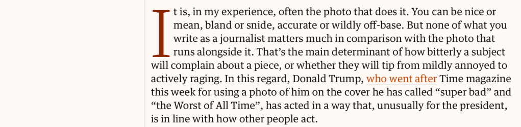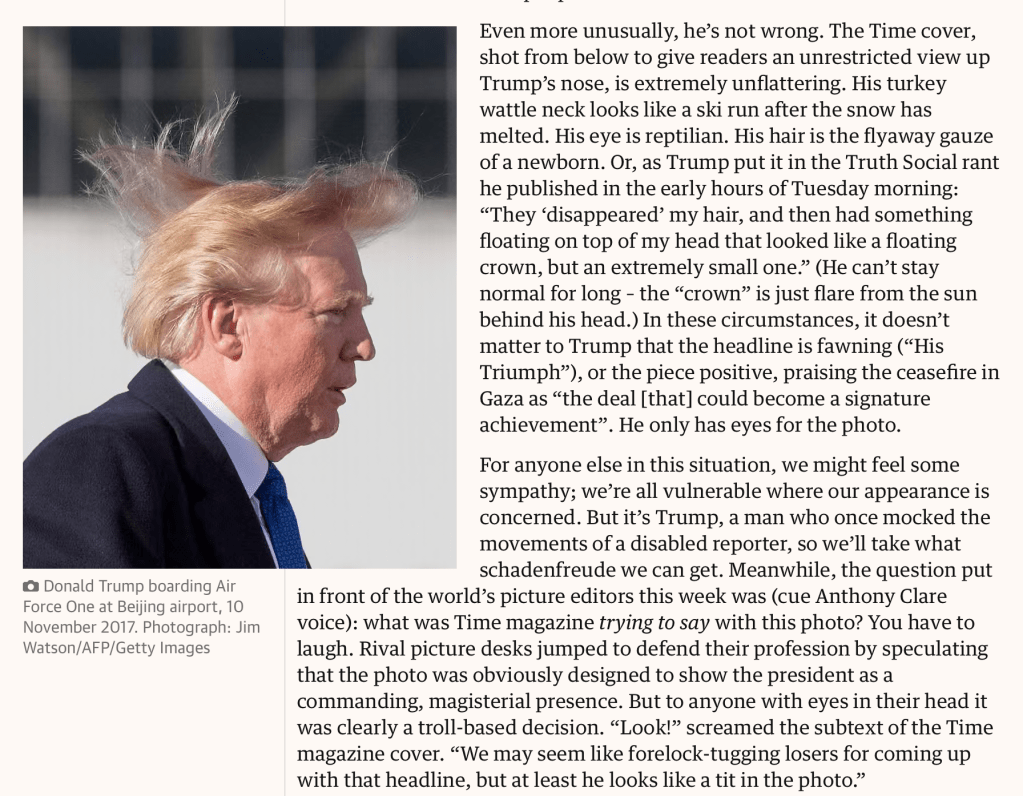 The Guardian Article Quoted – https://www.theguardian.com/commentisfree/2025/oct/15/donald-trump-photo-time-magazine