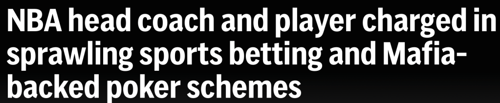 “NBA Players and Coaches Involved In A Mafia-Backed Gambling Ring”, now that is just the kind of clickbait that could not only earn Keystone Kash Fanduel’s largest payout in prop bet history, but also a seat at the big boy table come next month’s Cabinet meeting. Because even Kim Jong Goon enjoys when the top 10 Google searches aren’t a conveyor belt of Trumpster-fire headlines. So, on the rare occasion when a salacious scandal captures the nation’s interest, that doesn’t feature Trump, Epstein, or an unconscious Don Snoreleon farting himself a stinky lullaby; Dear Leader gets a chance to recharge his battery like most decaying dildos, and plan something even more fucked up than tearing down the White House on a double-dare from his “Ball Guy.”