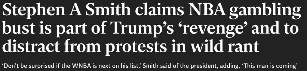 The Independent Article Quoted – https://www.the-independent.com/news/world/americas/stephen-a-smith-nba-gambling-arrests-trump-revenge-b2851255.html