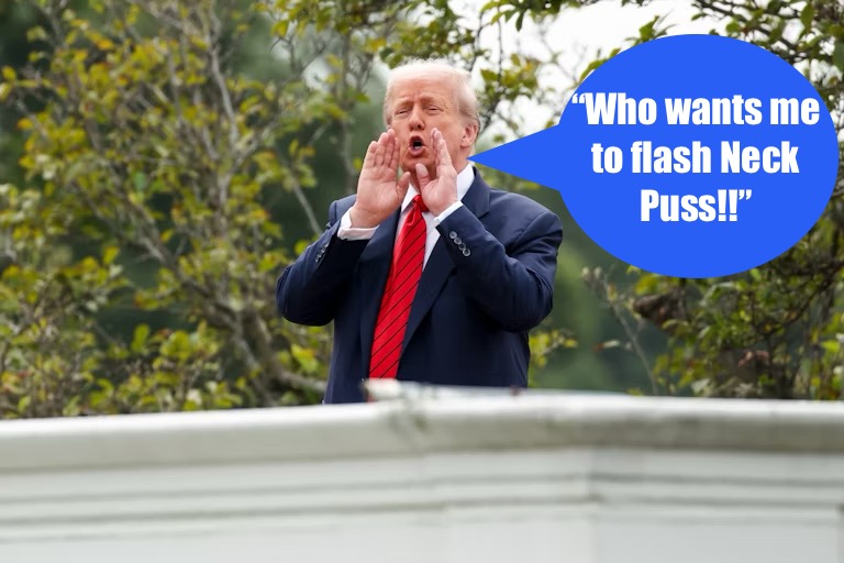 In Today’s Palate Cleanser, we learn that Donald Trump says he wasn’t planning to harm the existing White House structure at the start of his vanity project. But much like Trump refusing a presidential salary, if you want the work done properly, you don’t hire the Kool-Aid Man, because he also destroys everything he touches pro bono. If you told me last week, satellite images of 1600 Pennsylvania Avenue would show a ginormous, messy hole, I would’ve said, “Is Trump on the roof again, flashing his gaping neck puss?”