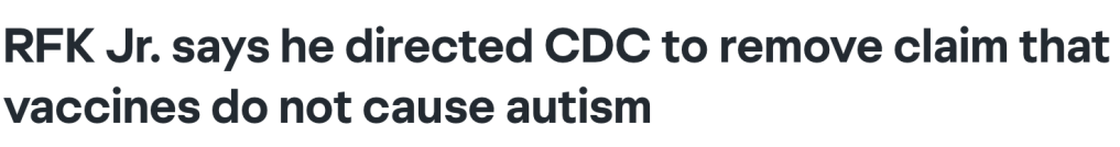 In Today’s Palate Cleanser, we learn that the CDC website no longer claims it is a scientific fact that vaccinations don’t cause autism. Proving the only thing RFK Jr hates more than autism is a whooping cough survivor. I guess when your a Kennedy there’s some inherited post-traumatic stress about surviving a shot.
