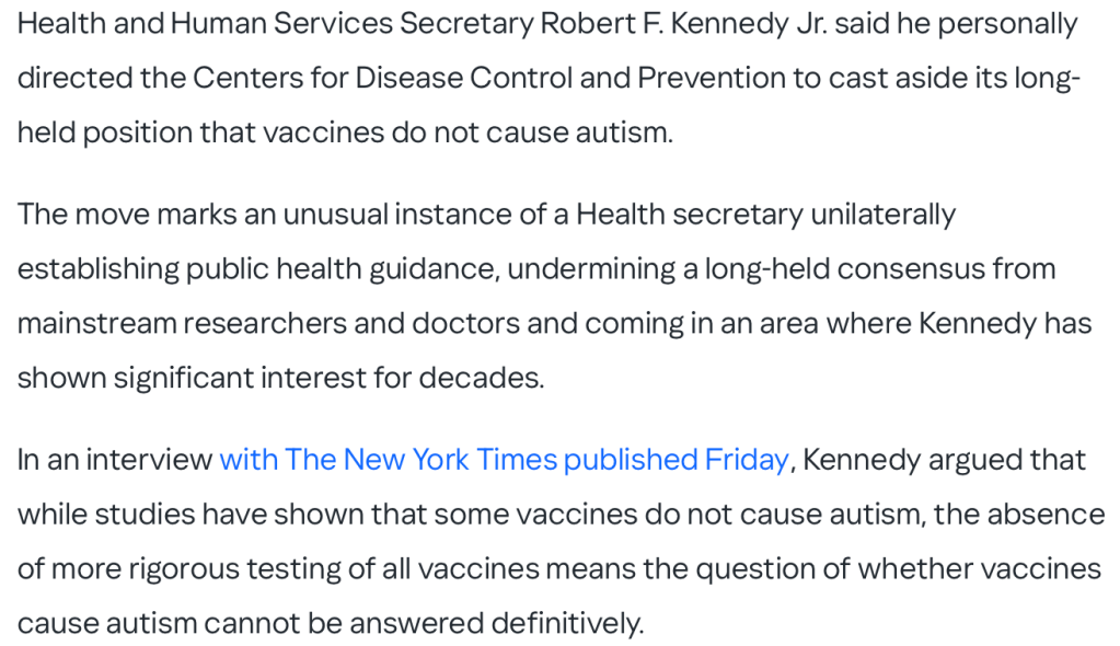The Politico Article Quoted – https://www.yahoo.com/news/articles/rfk-jr-says-directed-cdc-204000426.html